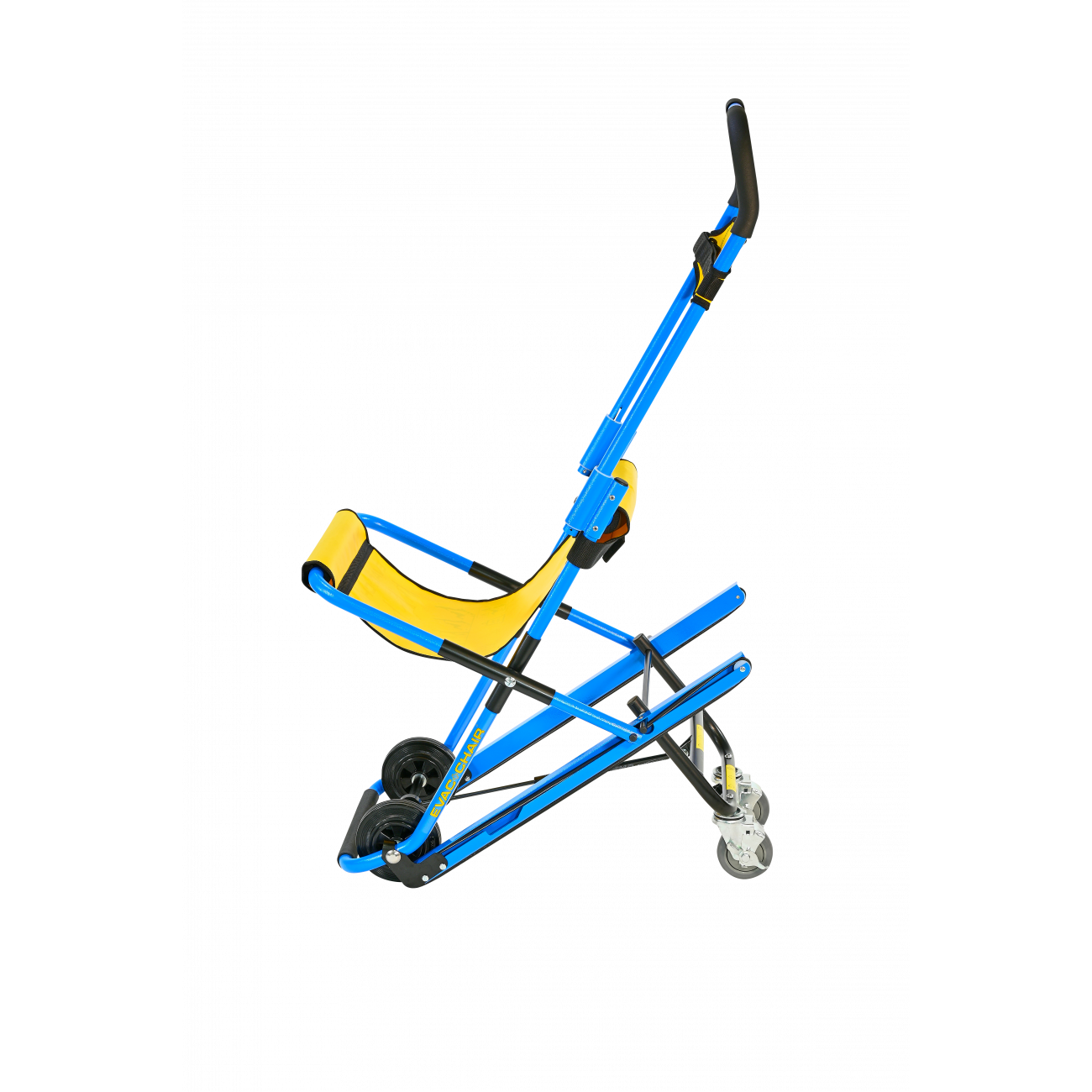 Praktische evacuatiestoel voor personentransport via wenteltrappen naar boven en beneden.